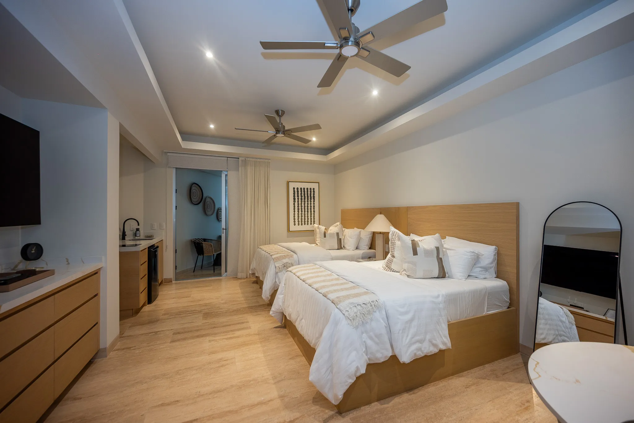 The suite is ideal for up to 4 guests. It features two king-size beds, making it a great option for couples, solo travelers, or a small family.